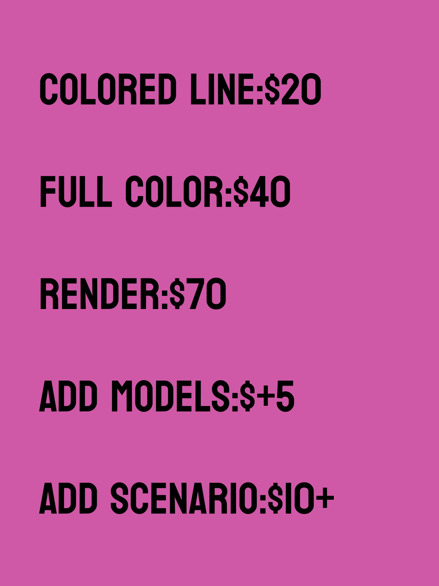 My delivery time is a minimum of 3 days. I do NOT draw politically incorrect content. Fetishes have an additional charge.